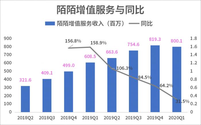 这就带来一个值得探讨的问题,疫情带来的社交隔离导致用户无聊时间增加,这会增加在线娱乐需求,因此,直播的需求一般来说是增加的,这一逻辑从斗鱼和虎牙两个直播平台的一季报可以得到验证。虎牙的直播收入一季度同比增长了46.5%,斗鱼的直播收入一季度同比增长了56%。但陌陌却同比下滑了13.5%。