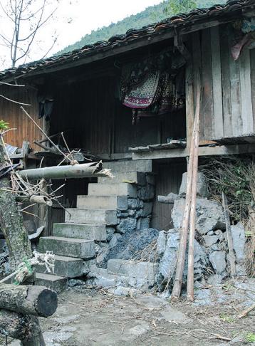 和村里其他老房子类似,李晓的木屋约100平方米,分上、中、下三层,号称“三局”。最下面一层叫“牲畜局”,用来养猪、牛、羊等牲畜。中间一层是“人事局”,人的起居、做饭、吃饭、织布都在这一层,和牲畜局之间隔着木板。“粮食局”就在“人事局”头顶上,主要用来存放粮食。