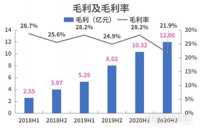 上图是阿里健康的毛利情况,收入增长的同时,阿里健康的毛利也是增长的,但是从毛利率来看,阿里健康2020H2降到了21.9%,创了新低。对于毛利率下滑,公司在财报中并没有解释原因。