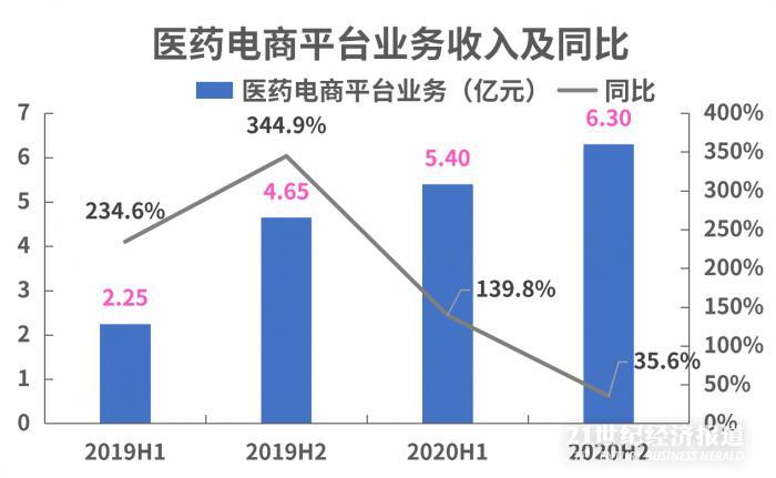 从上图可以看到,阿里健康这块业务2020H2出现了萎缩,同比增速也降到了只有5%。