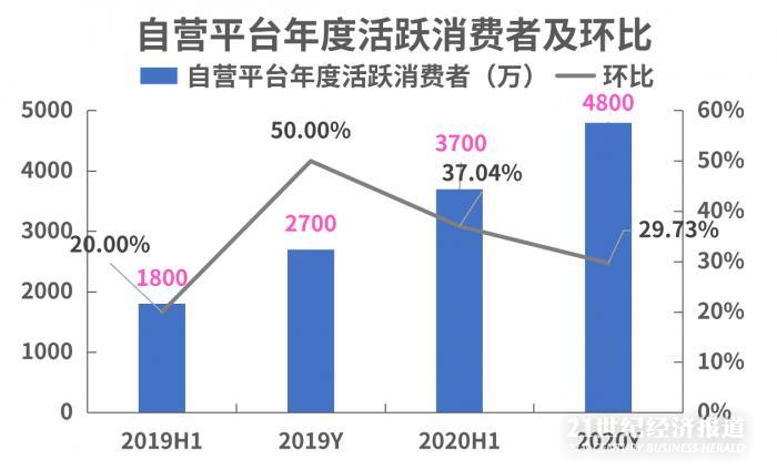 上图是公司医药自营业务的年度活跃消费者数和环比变化。从中可以看到,公司这一指标2020财年的环比增速回落倒了29.73%。
