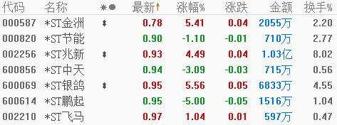 问题在于这并不是“面值退市”股的尽头。截至5月28日收盘,A股还有7只个股(不含上述提及的退市锐电、盛运环保和ST天宝)股价低于1元,成为大家口中的“仙股”。其中*ST兆新和*ST银鸽已连续12个交易日不足1元;*ST金洲已连续11个交易日不足1元;*ST节能已连续8个交易日不足1元。