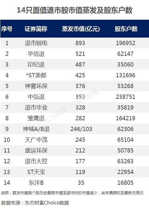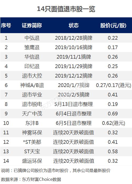 自从2018年底首只面值退市股中弘退出现之后,至目前的一年多时间,已有14股和“面值退市”挂钩。