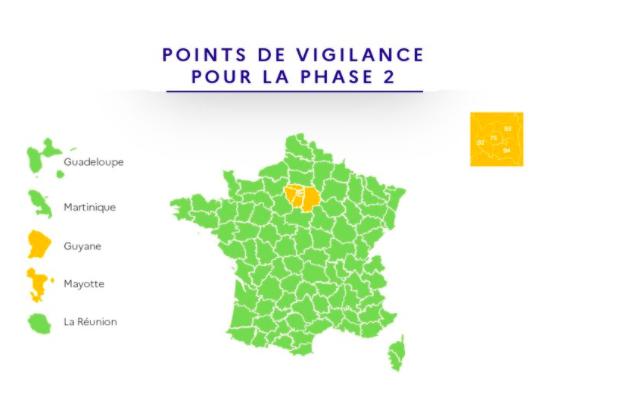 菲利普同时介绍了新的疫情地图。此前法国疫情图分为红绿两色,目前则新增了橙色,表示疫情相对严重。据介绍,法国目前已消灭此前的红色重灾区,但仍有几个省处于橙色疫区,其中包括法兰西岛大区的巴黎、马恩河谷、塞纳圣德尼、上塞纳、瓦兹河谷、埃松、伊芙琳省、马约特和留尼汪。