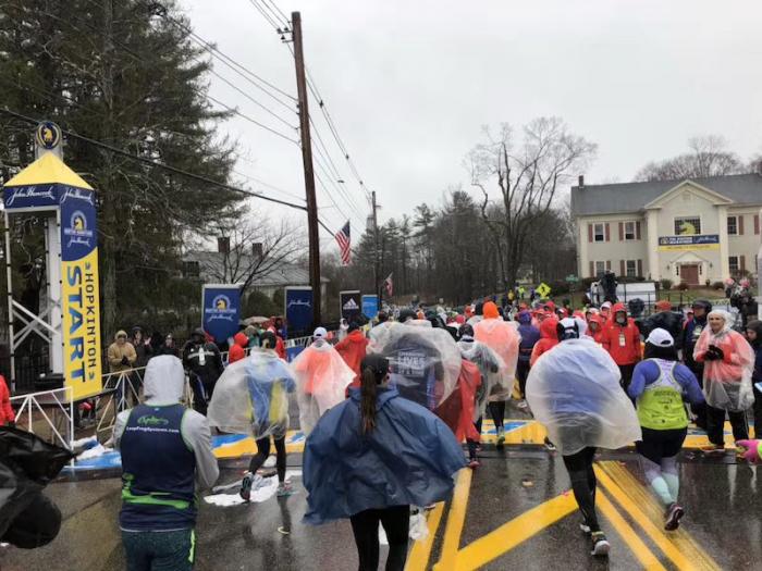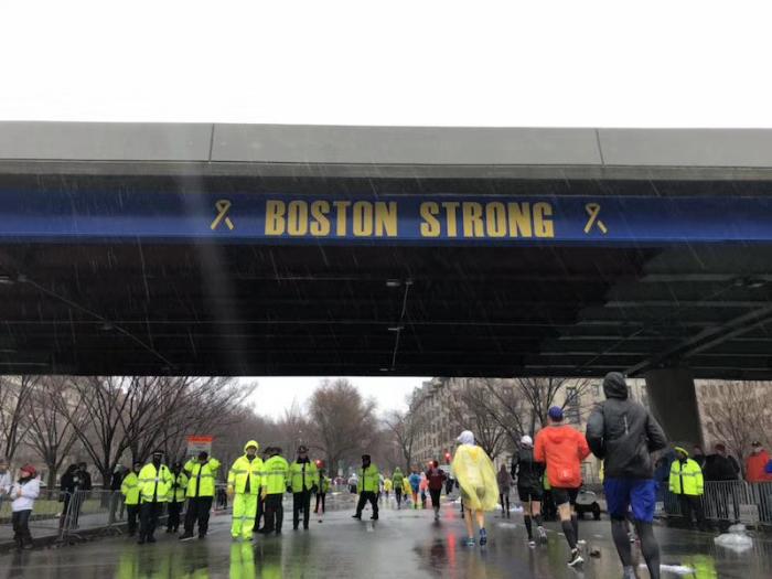 (2018年波士顿马拉遭遇暴风雨和极寒天气,赛事如期举办。摄影:周慧)
