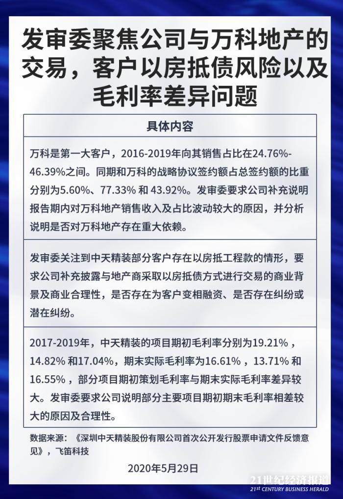 中天精装递交上市申请后,发审委于2019年9月6日给出反馈意见。