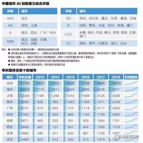 2019年12月31日,广东海丝研究院对外正式发布《中国城市人工智能(AI)创新能力评价报告》(下称“报告”)。报告指出,当前人工智能创新能力AAA级城市为北京,AA级城市为上海、深圳,A级城市为广州、杭州、南京、西安。武汉、成都、香港、苏州,佛山、澳门、贵阳、海口等城市分列B、C级。