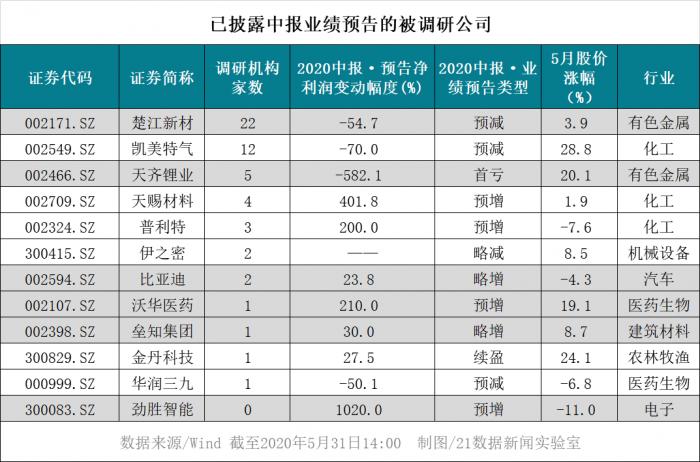 Wind数据显示,过去一周被调研的公司中,有12家已经披露2020年中报业绩预告,有7家预喜!其中,劲胜智能(300083.SZ)预计归属于上市公司股东的净利润1.48亿元-1.52亿元,同比增长990.00%-1020.00%!