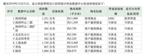截至2019年末,金云科技自有机柜数量约为7,100个。