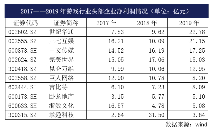 虽说在游戏版号审核收紧以及未成年人防沉迷等政策下,能够促使部分浑水摸鱼的劣质企业离开行业。但随之产生的问题并没有减少,黑市版号交易悄然滋生、游戏企业市值下跌、企业员工人数锐减等问题层出不穷。2018年三七互娱、巨人网络、完美世界、昆仑万维等游戏行业头部企业人员数量同比减少分别为16.28%、42.12%、11.18%和13.28%。此外,2018年末游戏行业市值排名前十的企业中除世纪华通以外,其余相较上年末市值均有不同程度的下跌。除了头部企业能够实现净利润增长外,其余游戏企业甚至出现业绩亏损。2019年随着游戏版号的逐步放开,游戏企业净利润有所回升。2020年多个行业因疫情受到冲击,而游戏行业却出现爆发增长,仅2020年一季度世纪华通、游族网络、三七互娱、吉比特净利润同比增长257%、110.14%、60.4%和50.95%,头部企业业绩逐步攀升。