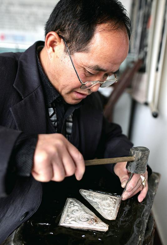 师父有两个,我的父亲和堂哥,我是银匠家族的第七代传承人。
