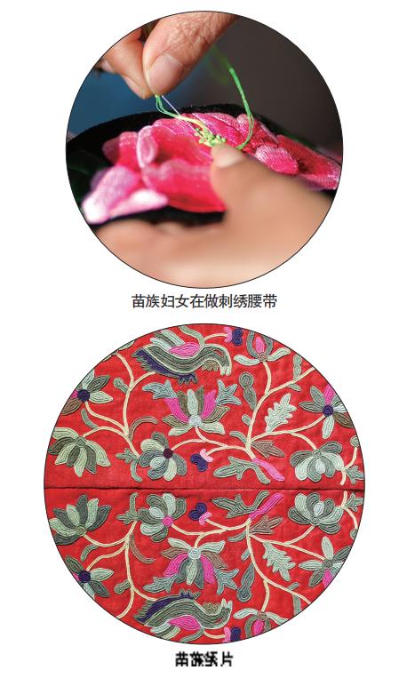 图1:苗族妇女在做刺绣腰带 图2:苗族绣片