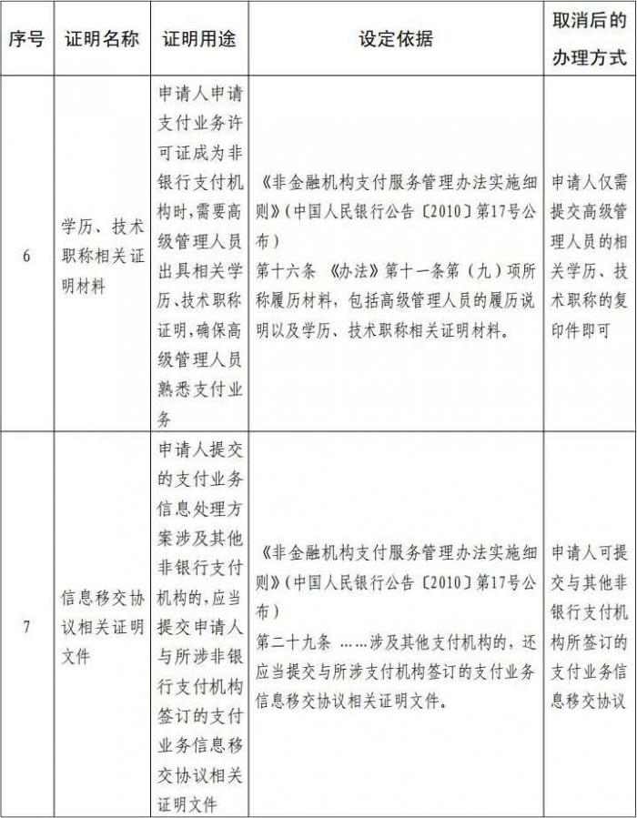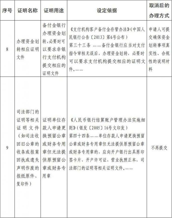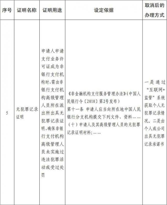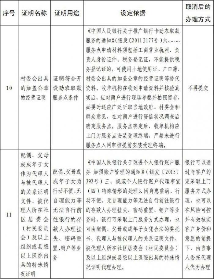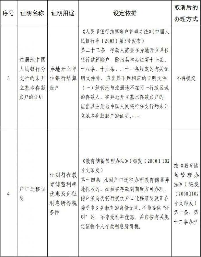 6月2日,中国人民银行公告表示,为贯彻落实党中央、国务院关于简政放权、优化服务、减证便民的决策部署,人民银行会同相关部门认真开展了证明事项清理工作,共取消“户口迁移证明”等证明事项11项,并对涉及的《教育储蓄管理办法》《非金融机构支付服务管理办法实施细则》等4件规章和5件规范性文件的相关条款进行了修订。