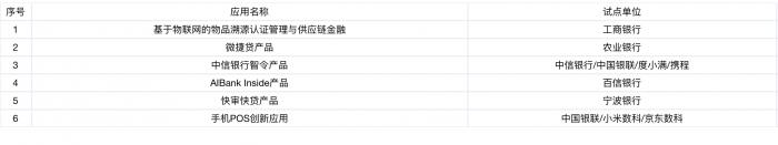 2019年12月23日,人行营管部会同相关部门组织召开北京市金融科技创新监管试点启动会,率先在全国开展金融科技创新监管试点。2020年1月14日,人行营管部向社会公示首批金融科技创新监管试点应用名单,总计6个项目。分别是工商银行的基于物联网的物品溯源认证管理与供应链金融;农业银行的微捷贷产品;中信银行、中国银联、度小满、携程联合申请的中信银行智令产品;百信银行的AIBank Inside产品;宁波银行的快审快贷产品;中国银联、小米数科、京东数科的手机POS创新应用。