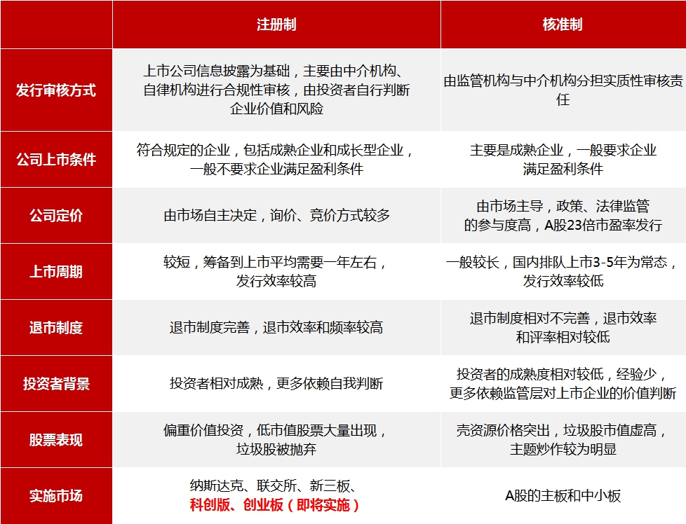 表1:注册制与核准制的区别