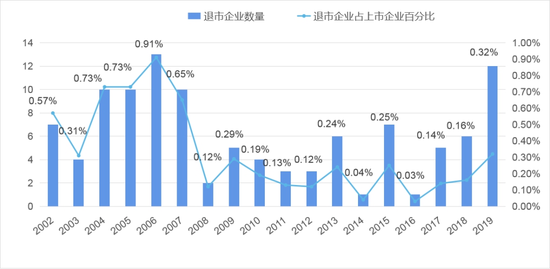 图1:A 股市场退市企业数量及退市率