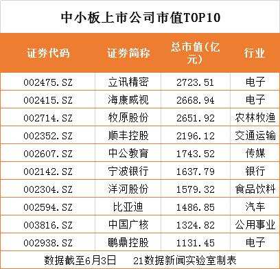 中小板市值新冠军诞生!截至6月3日收盘,在大涨近5%后,手握苹果和华为两大客户的立讯精密,总市值超过2700亿元,超越牧原股份和海康威视,成为中小板市值新冠军。