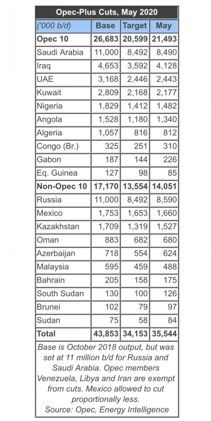 根据4月达成的减产协议,OPEC+将在5月和6月每天减产970万桶/日,接近全球原油供应总量的10%,创下史上最高减产规模。美国能源情报集团(Energy Intelligence)的统计显示,OPEC+在5月完成了86%的减产配额。