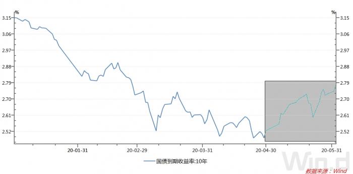 2月份以后,为应对疫情冲击,央行多次降准降息,银行间市场隔夜资金利率连续多个交易日低于1%,市场资金充裕,机构纷纷买债,推动了债券价格上行。但5月以来,随着国内经济修复、地方债大规模发行以及降准降息预期的落空,隔夜资金利率甚至回升至2%以上,债市回调。