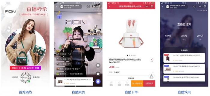 此前,知名时尚皮具品牌菲安妮进行直播带货,就并未选择流行的抖音等平台,而是和百胜软件合作,在小程序进行直播尝试。利用全国上千家门店的导购自身的朋友圈、信息流广告等方式进行引流,最终取得成交量环比提升1000%的成绩。