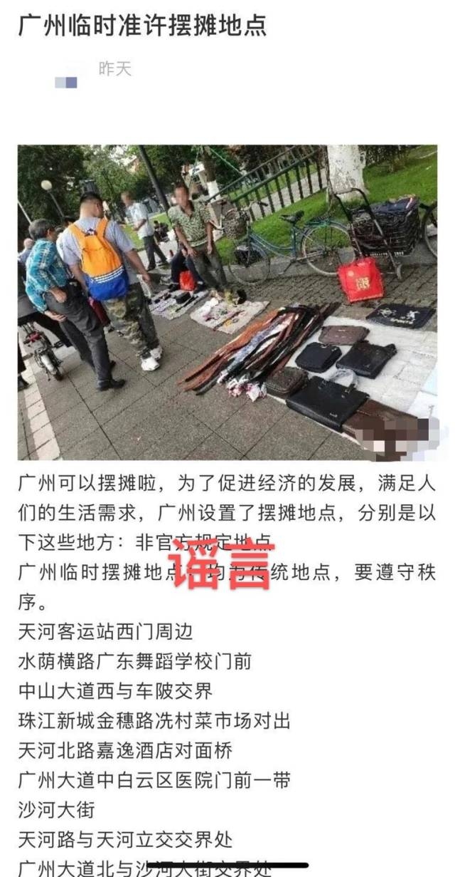 广州公布“准许临时摆摊地点”?假的!