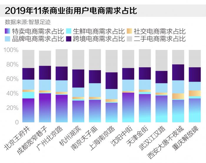 北京路是“千年商都”广州的重要名片,广州这座城向“直播电商之都”的转型,也在悄然改变着北京路。根据21世纪经济研究院发布,京东数科研究院、京东智能城市研究院、智慧足迹联合提供技术支持的《2020中国步行街智能化发展报告》(下称:报告),广州北京路虽有千年历史,却呈现出最“年轻”的形态:2019年,北京路街内客流生活服务类应用和短视频类应用使用量占比排名均为第一。