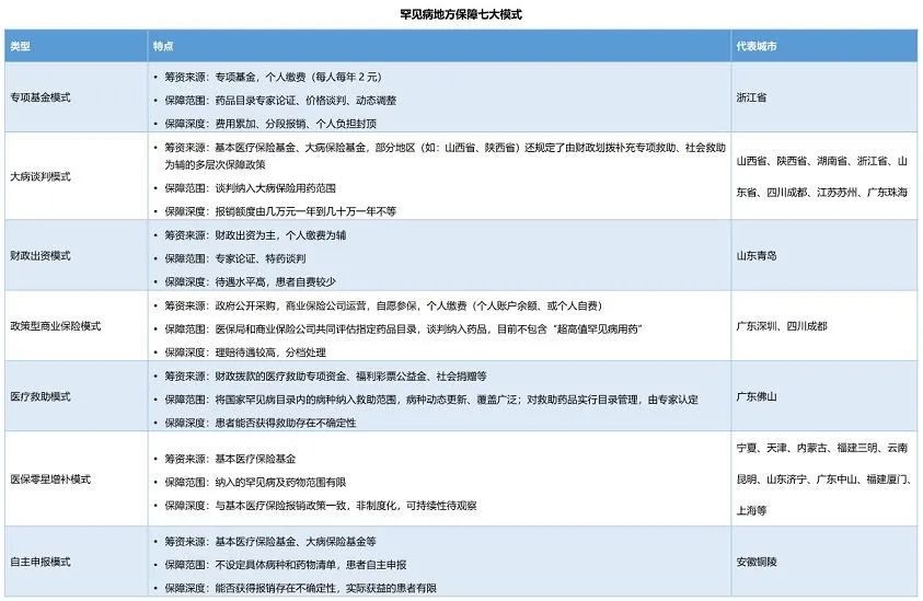 罕见病地方保障七大模式。(报告截图/图)