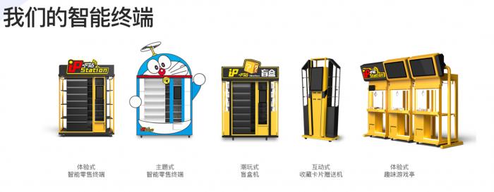 IP小站官网显示,2017年金运激光第一台智慧零售终端以售卖机和展示柜一体机形式正式上线,公司产品包括只能零售终端、潮玩式盲盒机等。