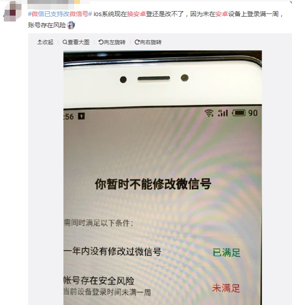 需要满足两个条件:最近一年没有修改过微信号以及当前帐号无安全风险。