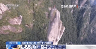 2017年4月15日清晨,三清山风景区陆续迎来一波波的游客。可当人们来到巨蟒峰的观景台时,他们惊讶地发现在不远处的巨蟒峰顶部,竟有两个人。此外,还有一名男子正在攀爬中。