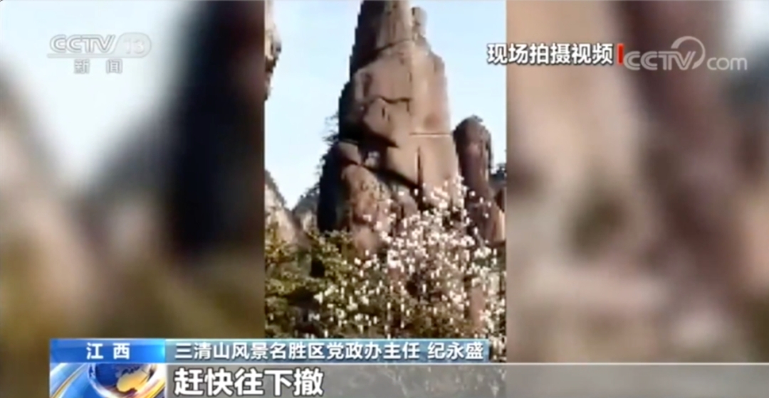 上饶市公安局三清山分局法制大队大队长 周大江:总共钉了26枚岩钉,在最脆弱的7米的核心区块,他们钉入了4枚岩钉。