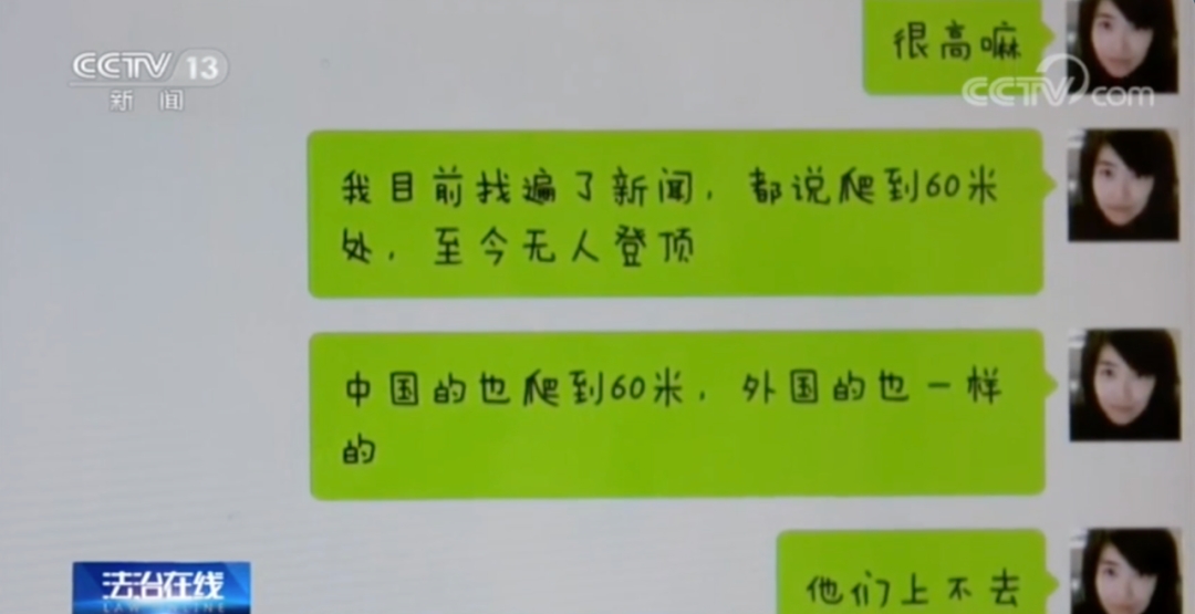 “我已打算好被抓了”“写检讨”“态度要好”类似这样知法犯法的文字频繁出现在3人计划攀登巨蟒峰期间的聊天记录里。