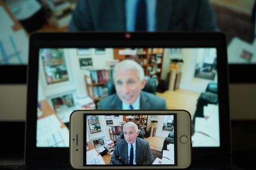 5月12日,美国国家过敏症和传染病研究所所长安东尼·福奇以视频会议方式参加在美国华盛顿举行的国会听证会。新华社记者刘杰摄