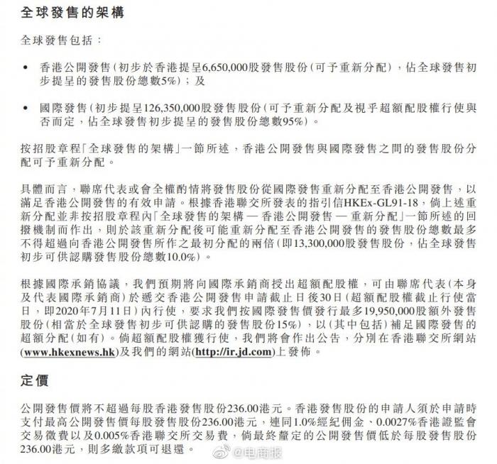 京东在港公开发售:最高公开发售价236港元/股,“6·18”登陆港交所