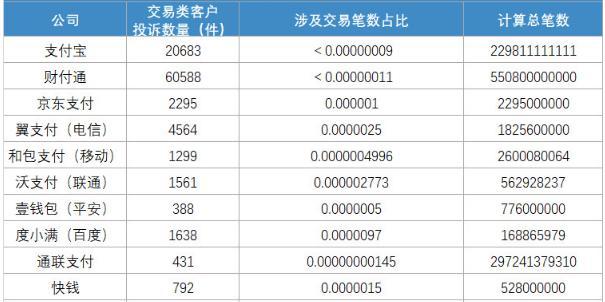 根据支付机构依规公布的客户投诉数量和类型、处理完毕的投诉占比等情况,业界测算过支付宝和财付通的交易量,其中,2019年,支付宝交易总笔数约为2298亿笔,日均6.3亿笔;财付通交易总笔数约5508亿笔,日均15.09亿笔;后者是前者的2.4倍。相比2018年,二者交易量均有所上升,同时也保持了较为稳定的差距。