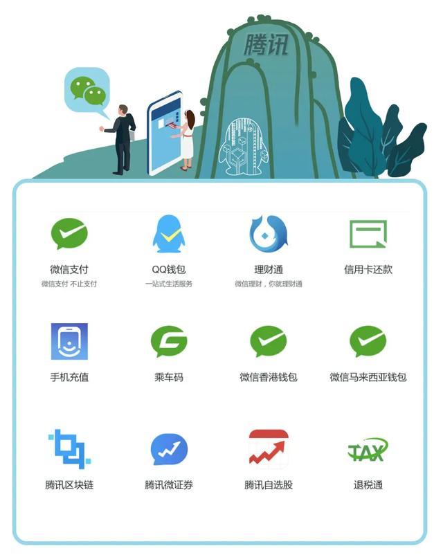 微信支付以微信平台为入口,提供底层技术支持是腾讯的另一产品——财付通,它隶属于腾讯金融科技,QQ钱包、理财通、腾讯区块链发票、乘车码等产品,也均出自此部门,然而,微信支付是FiT重要的基石。