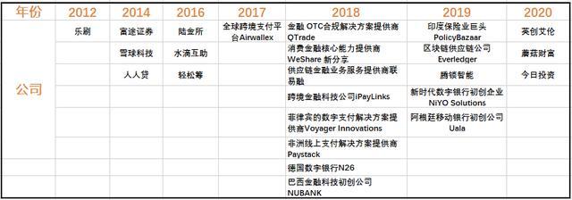 2020年以来,其已陆续投资了英创艾伦、蘑菇财富、今日投资、 Voyager Innovations(菲律宾的移动支付平台,此次为追投)、Airwallex(全球跨境支付平台)等5家金融科技公司。
