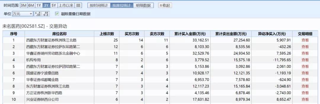 其中西藏东方财富证券株洲珠江北路、西藏东方财富证券拉萨东环路第二、华鑫证券湖州劳动路浙北金融中心上榜次数位列前三,分别为25次、12次、11次。另外,上榜次数位列第四的为机构专用席位,上榜8次。