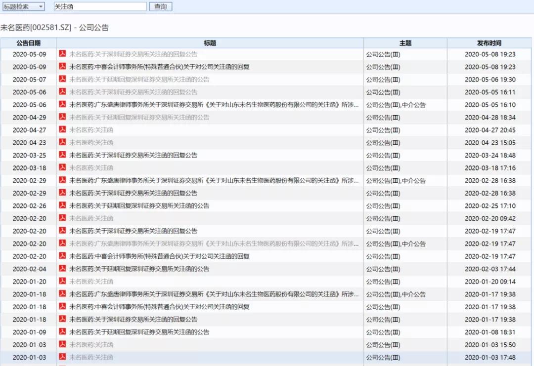 未名医药控股股东未名集团违规占用上市公司资金,持有上市公司股权遭到司法拍卖,或许是这一轮大跌的导火索。此外,据记者统计,深交所这半年时间对上市公司出具的关注函高达7封,直指大股东资金占用问题。