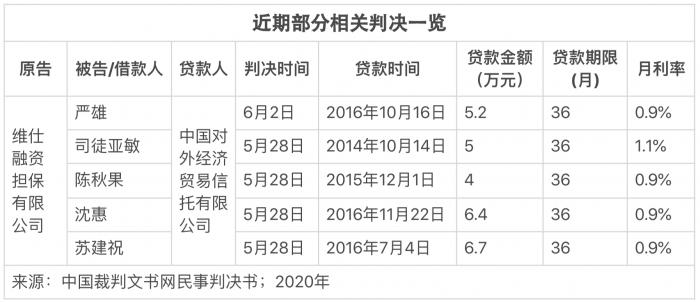 近期,裁判文书网上公布了一批维仕融资担保有限公司(简称“维仕融资担保”)作为原告与逾期借款人作为被告的追偿权纠纷判决书。