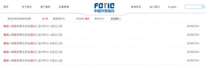据维信金科官网显示,公司早在2007年就与外贸信托达成合作,首创“担保+信托”模式,开展个人消费金融服务,并于2012年与外贸信托合作汇金三号集合信托。从外贸信托官网亦可查询到该系列产品成立列表。