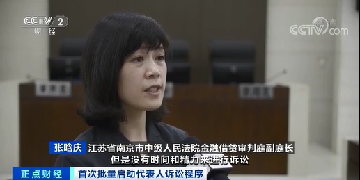 江苏省南京市中级人民法院金融借贷审判庭副庭长 张晗庆:对于那些可能遭受损失,但是没有时间和精力来进行诉讼,或者欠缺一些诉讼能力的投资者,可以主张相应的索赔。在代表人诉讼中可以通过投资者推选有诉讼能力,或者相应具有专业的投资者保护职能的一些专业机构参与进来支持诉讼。