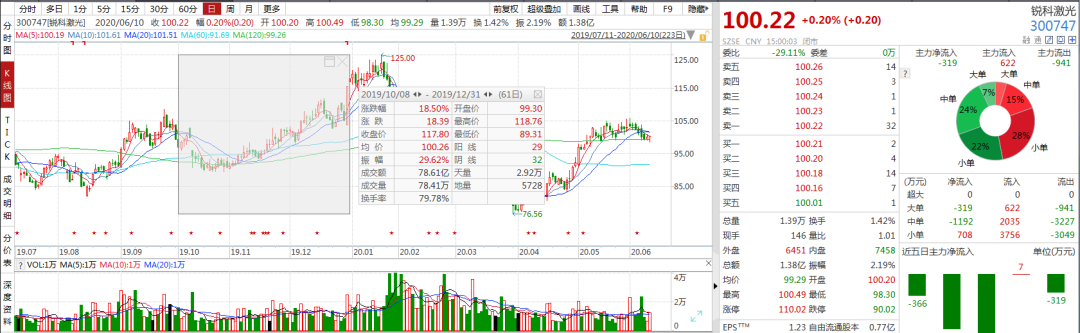 相比西藏药业、用友网络等个股,锐科激光是葛卫东的“新宠”,去年年底刚刚进入前十大流动股股东榜单。也因此被一些市场人士解读为这是葛卫东新挖掘和埋伏的个股,未来或有成为中长线牛股的潜力。