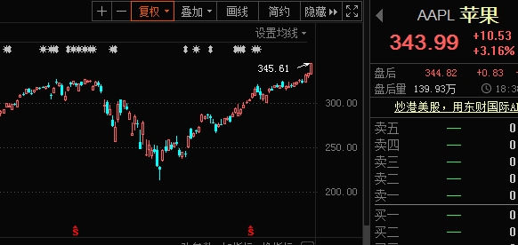 科技股开启狂欢模式,苹果、亚马逊、微软、Facebook均创历史新高。苹果涨3.16%,市值逼近1.5万亿美元大关。亚马逊涨3.04%,奈飞涨3.47%,谷歌涨0.66%,Facebook涨3.14%,微软涨0.76%,特斯拉跌0.97%。