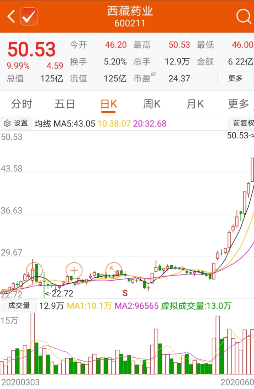这是西藏药业的股价走势图: