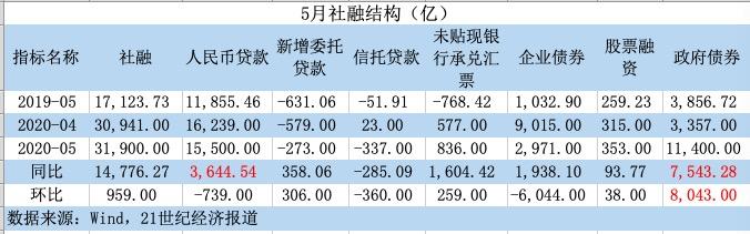 21世纪经济报道记者根据Wind数据统计显示,5月地方债发行1.3万亿元,为历史最高。在此之前,地方债单月发行规模最高的月份为2016年4月,当月发行规模达到1.06万亿元。社融数据中,5月政府债券相比去年同期多增7500多亿。