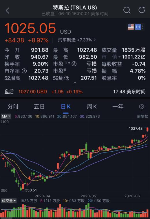 三是特斯拉暴涨近9%,总市值突破1900亿美元,超越丰田成全球市值最大汽车公司。