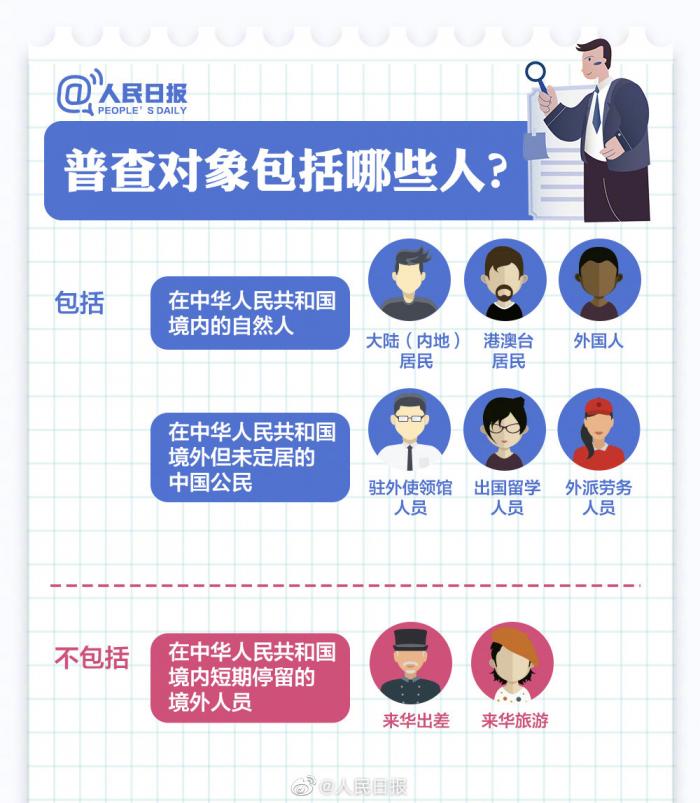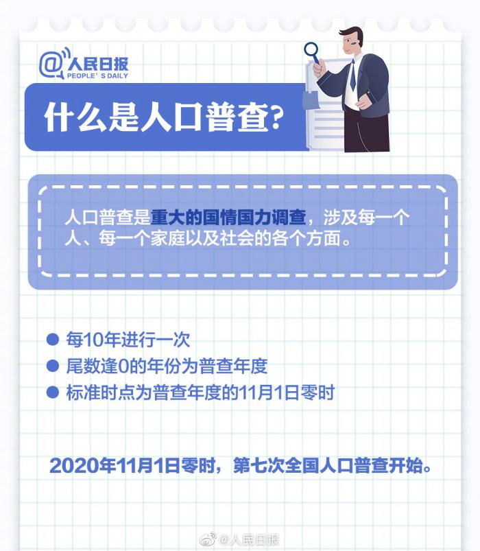 2020年11月1日,我国将迎来第七次人口普查。今年的人口普查采取电子化方式开展,普查对象将可以通过互联网自主填报。哪些人是人口普查对象?都要填报哪些内容?人口普查如何保护个人信息?今天,中国人口日,戳图了解↓