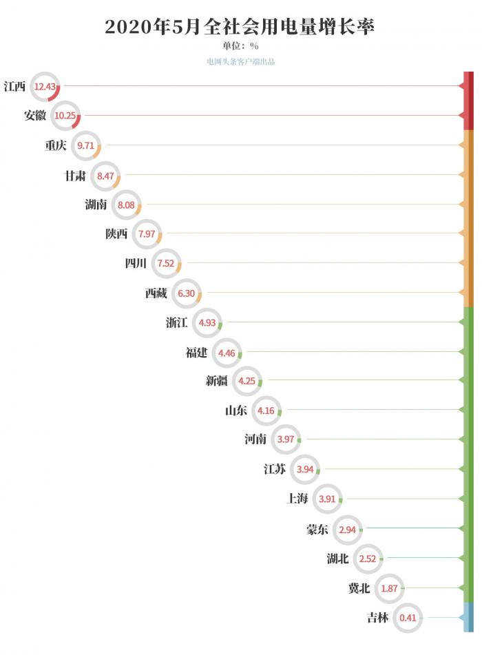 此外,据了解,截至5月31日,广东、广西、云南、贵州、海南电网5月售电量分别增长了8.1%、15.9%、9.3%、4.5%、12.5%,五省区各单位售电量全部转为正增长。