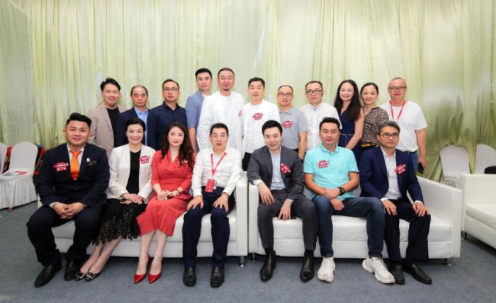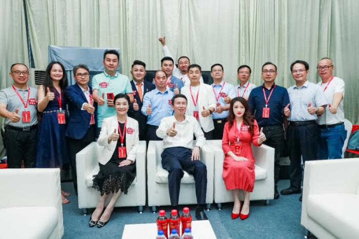 广州政协主席刘悦伦、广州市科学技术局局长王桂林、商务局局长刘晨辉与众企业家合影鼓励